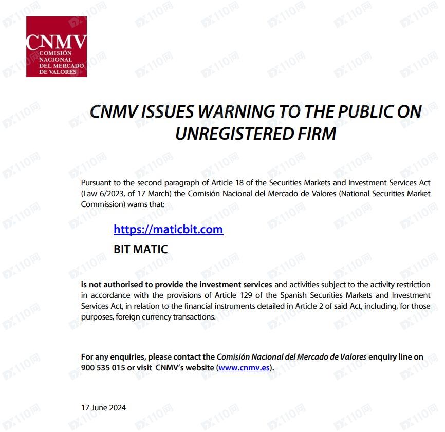 此外,該平臺非法提供金融服務,已被西班牙國家證券市場委員會(CNMV)列入警示,請遠離!