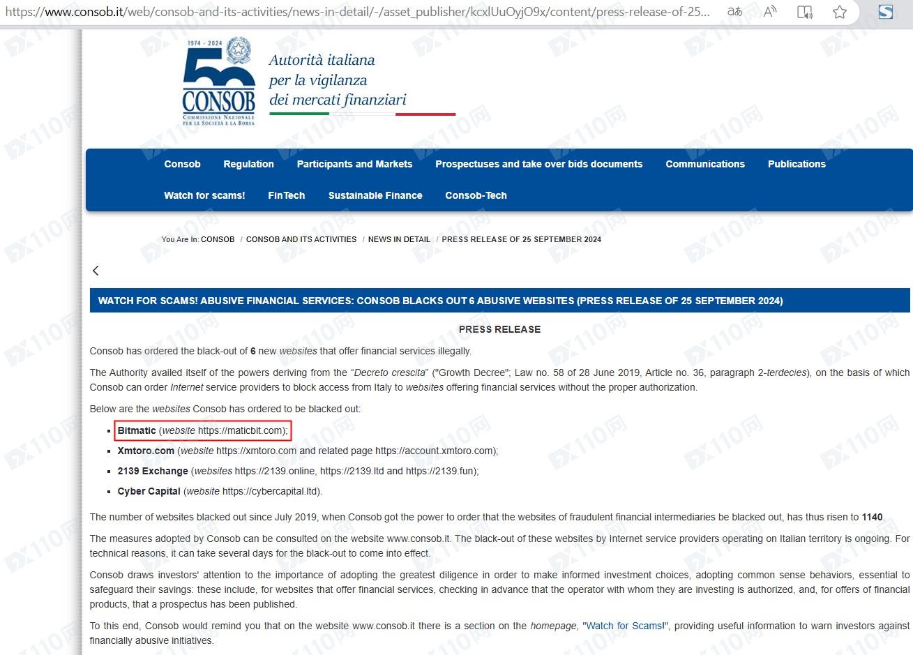 2024年10月3日新增義大利金融市場監管局(CONSOB)警示圖如下: