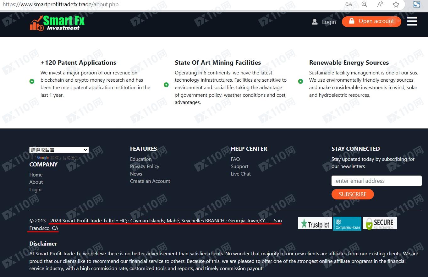 該平臺宣稱提供外匯、股指、貴金屬、加密貨幣等交易服務,由Smart Profit Trade-fx ltd運營,總部位于開曼,但未公布監管信息以便用戶核實。