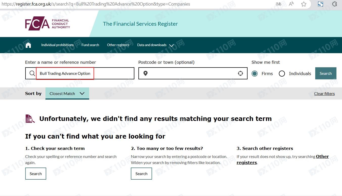 請注意,英國的監管機構是英國金融行為監管局(FCA),我們在FCA查無符合Bull Trading Advance Option的公司名稱,確認是無監管的平臺,請勿入金交易。