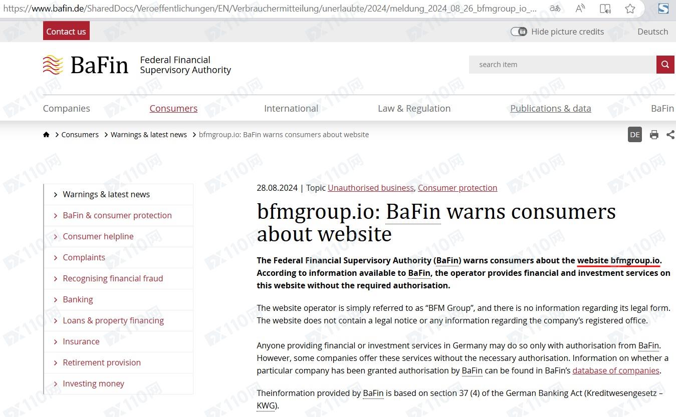 此外,該平臺非法提供金融服務,已被德國聯邦金融監管局(BaFin)列入警示,請遠離!
