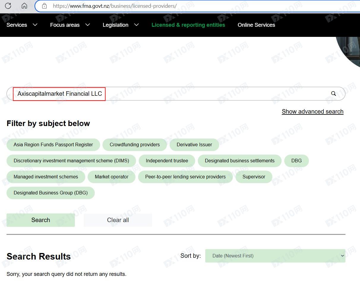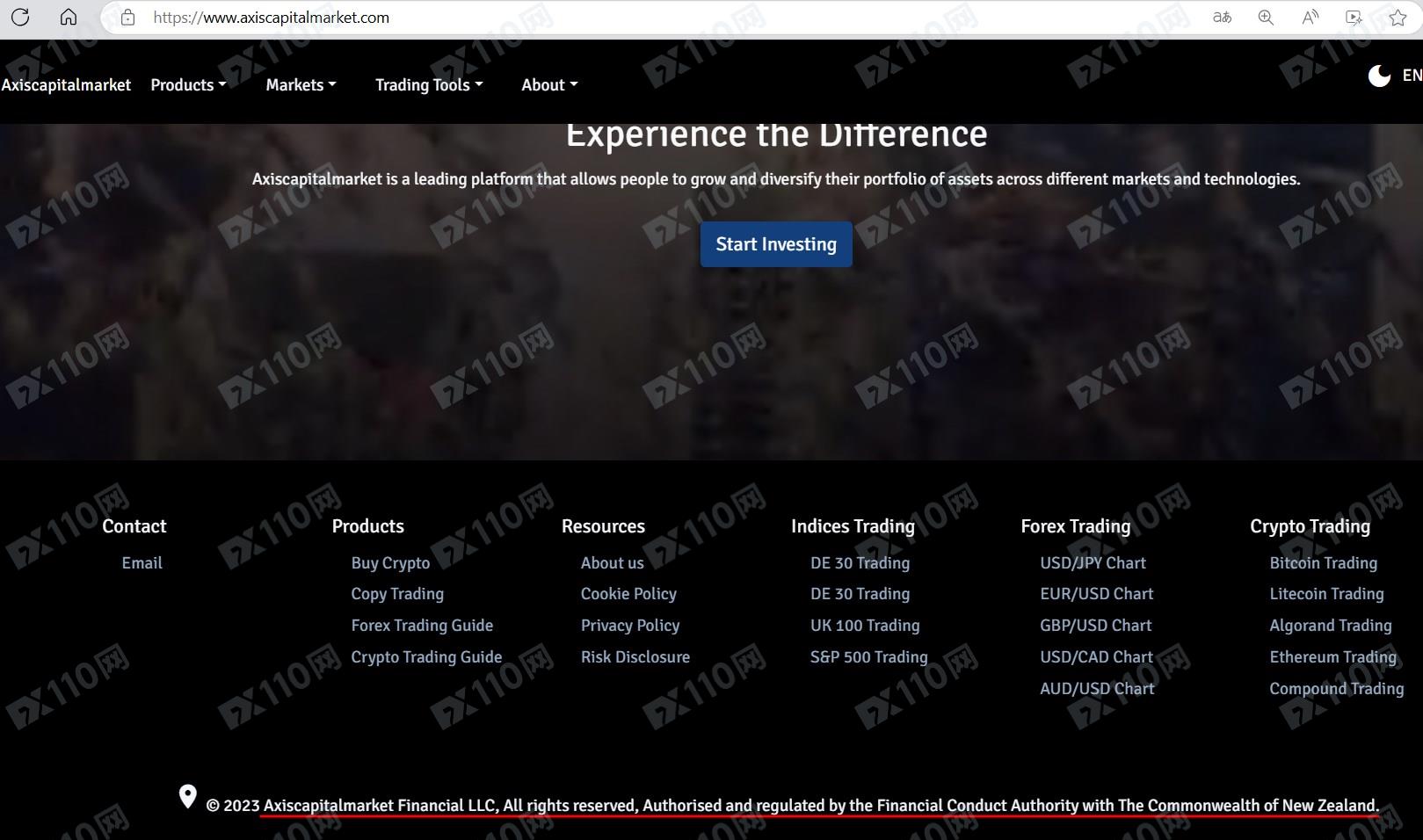 該平臺宣稱提供外匯、股票、加密貨幣等交易服務,由Axiscapitalmarket Financial LLC運營,受新西蘭聯邦金融行為監管局授權和監管。
