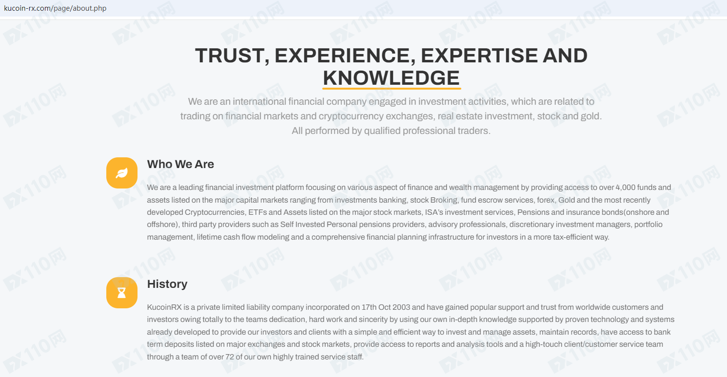 KucoinRX平臺宣傳是一家英國的金融投資平臺,提供外匯、指數、股票、貴金屬、加密貨幣、能源等金融衍生品投資交易服務,但并未公布其金融服務牌照以便核實。