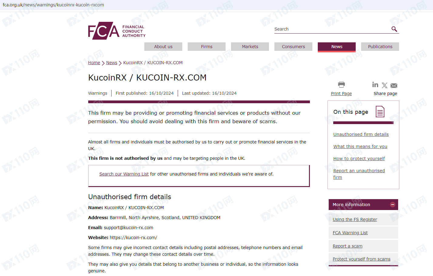 因未經授權許可提供金融產品服務,已被英國FCA列入警示黑名單,請遠離!