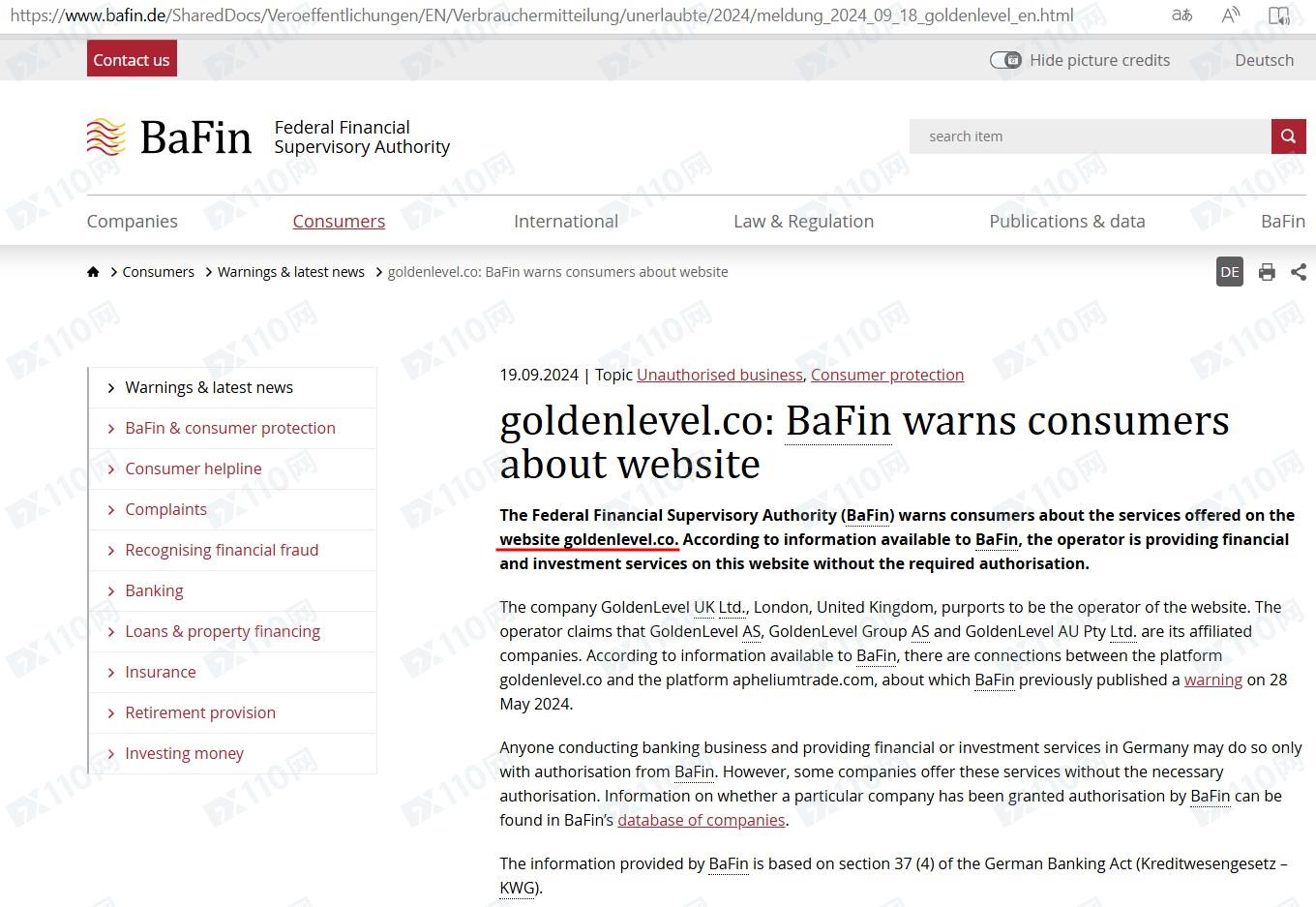此外,該平臺非法提供金融服務,已被德國聯邦金融監管局(BaFin)列入警示,請遠離!