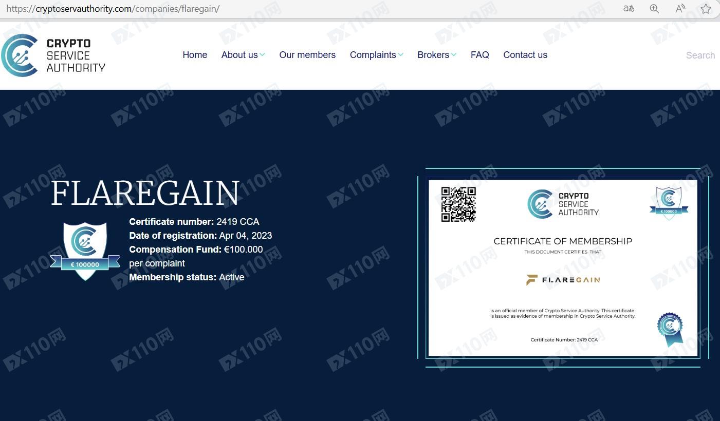 該平臺宣稱提供外匯、股指、商品、加密貨幣等交易服務,由加密服務機構(CRYPTO SERVICE AUTHORITY )授權和監管。