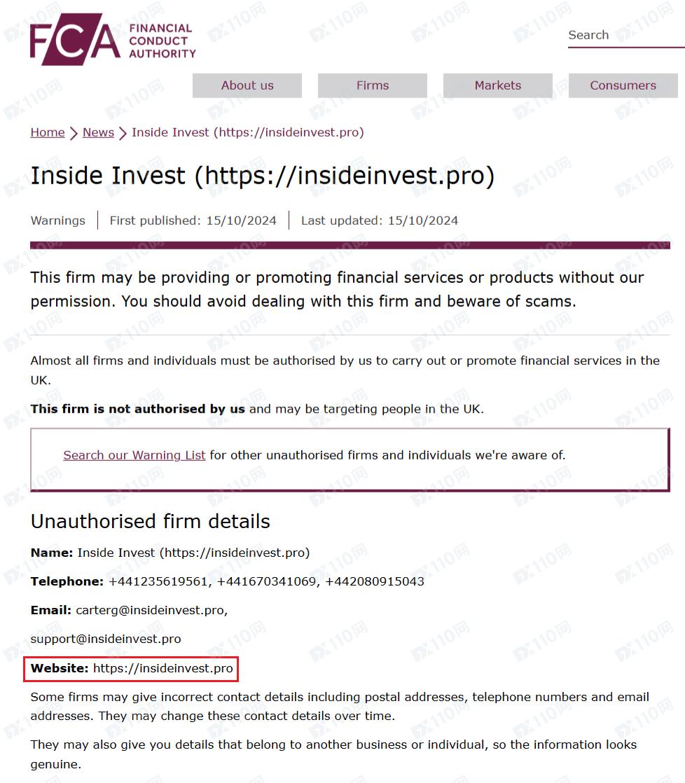 2024年11月19日新增英國金融行為監管局(FCA)警示圖如下: