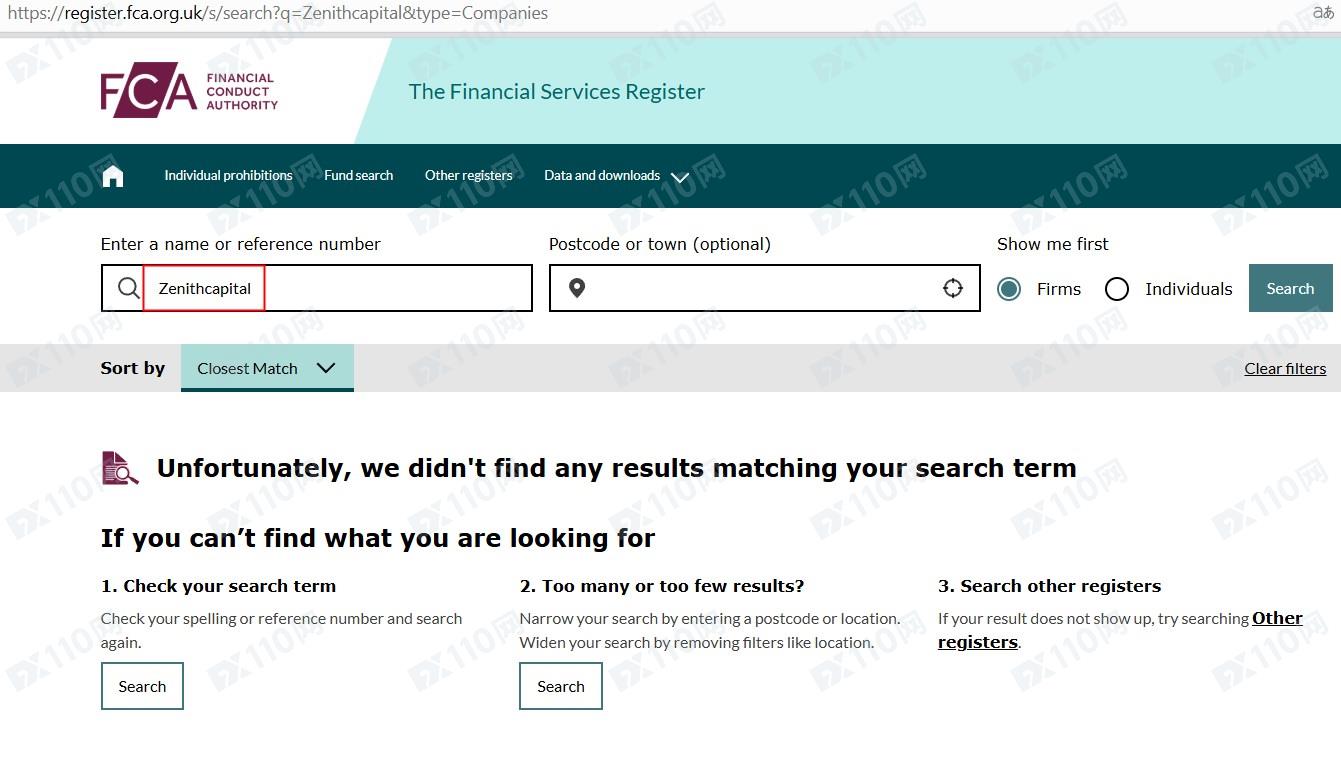 我們依標示位置在英國金融行為監管局(FCA)也查無符合Zenithcapital的公司名稱,確認是無監管的平臺,請勿入金交易。