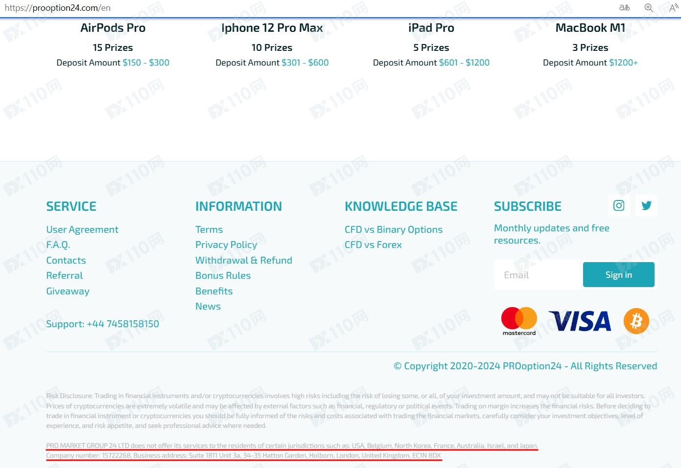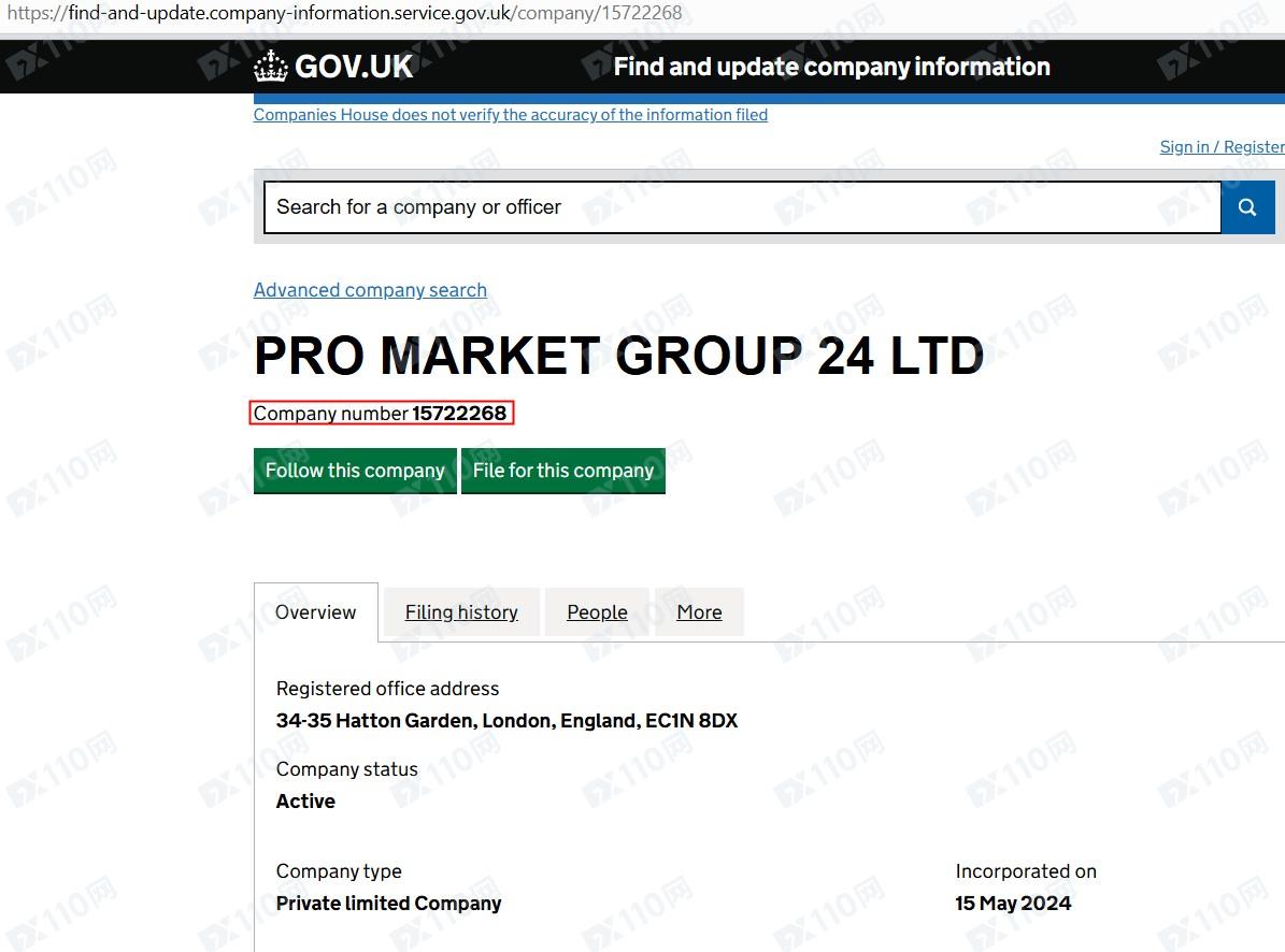 該平臺宣稱提供外匯、期權等差價合約交易服務,由PRO MARKET GROUP 24 LTD運營,公司注冊于英國,注冊號15722268,但未公布監管信息以便用戶核實。