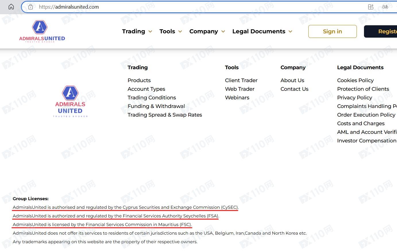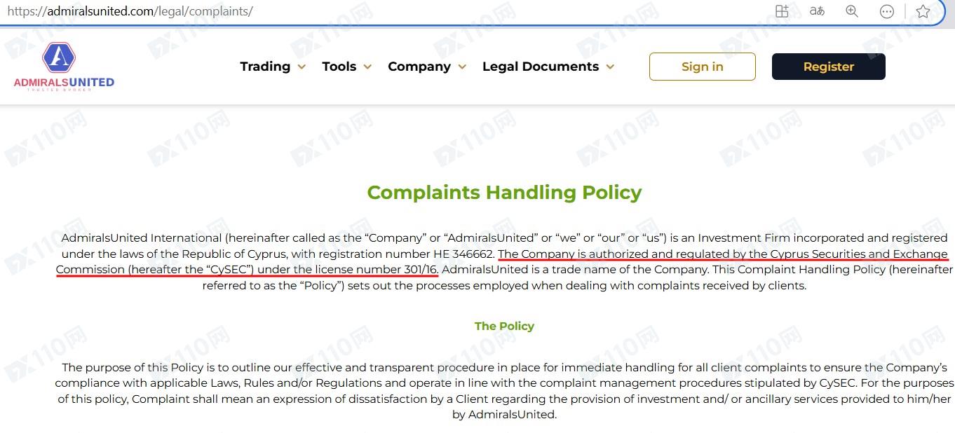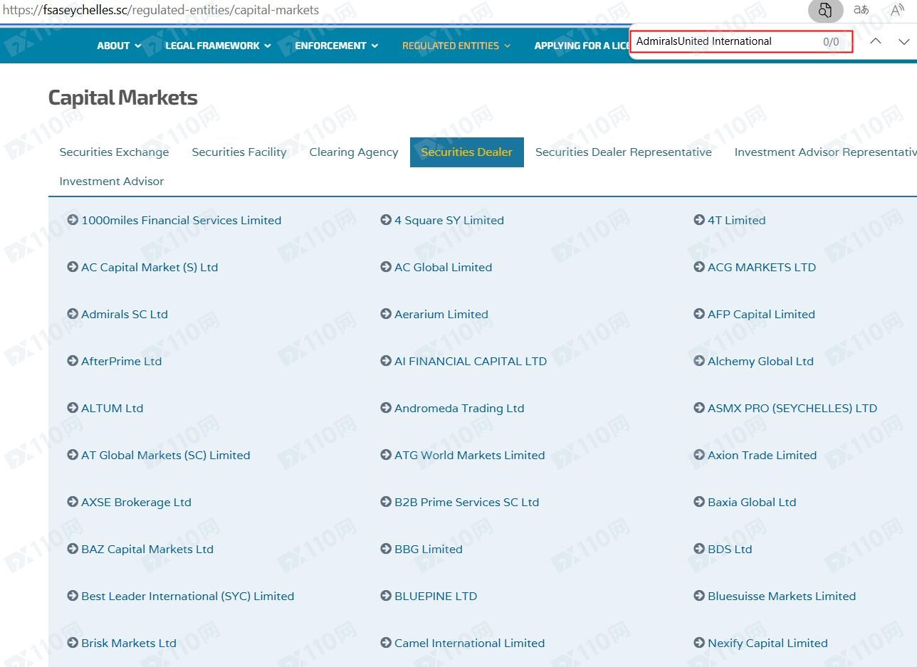 該平臺宣稱提供外匯、股票、商品、加密貨幣等交易服務,AdmiralsUnited的全稱是AdmiralsUnited International,受塞浦路斯證券和交易委員會CySEC(許可證號301/16)、塞舌爾金融服務管理局FSA、毛里求斯金融服務委員會FSC的監管和許可。