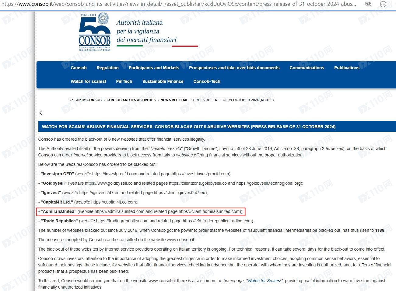 此外,該平臺非法提供金融服務,已被意大利金融市場監管局(CONSOB)列入警示,請遠離!