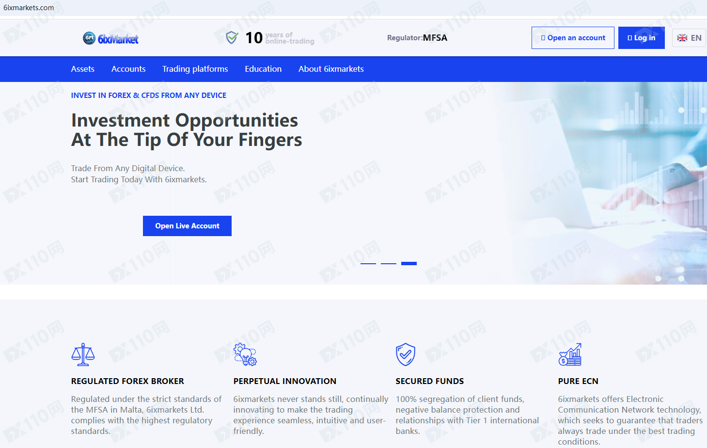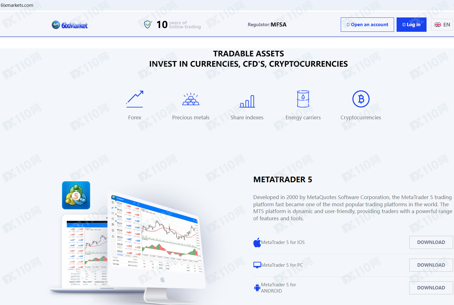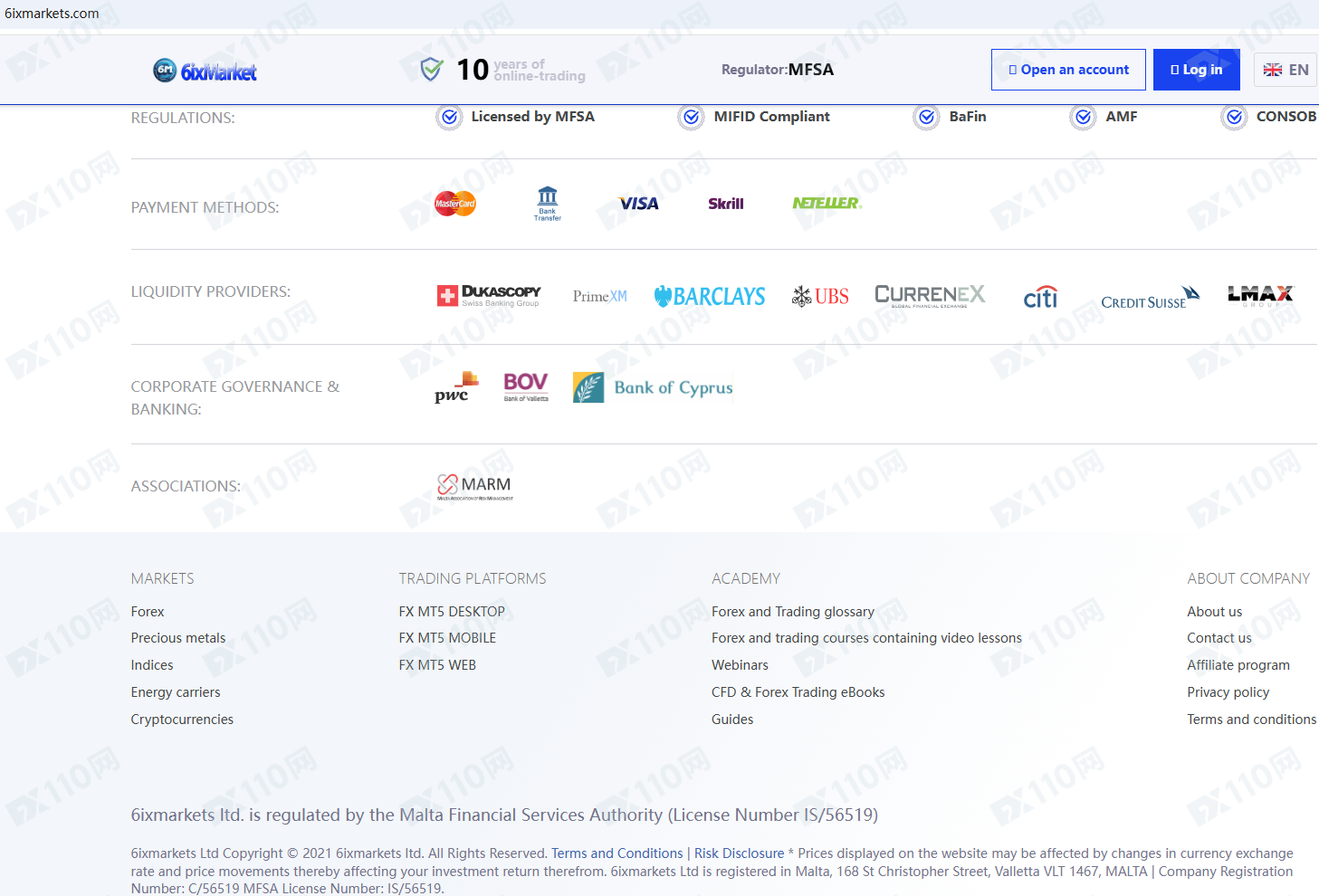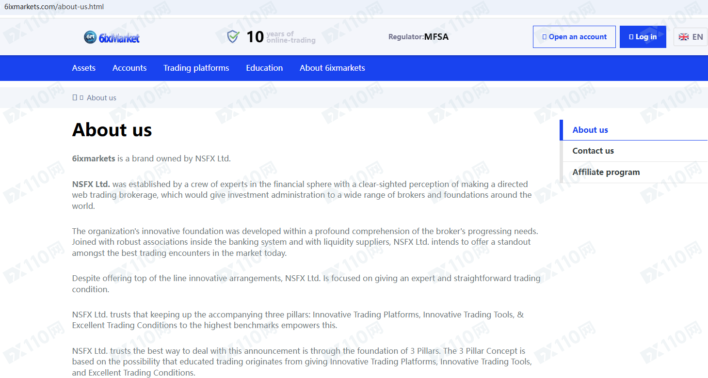 6ixmarkets ltd宣傳受馬耳他MFSA的許可和監管,是NSFX Ltd的品牌,提供外匯、貴金屬、股票、指數、能源、加密貨幣等金融衍生品投資交易服務。