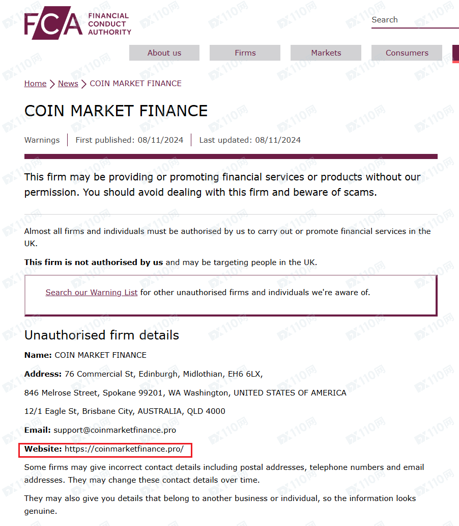 此外,該平臺非法提供金融服務,已被英國金融行為監管局(FCA)列入警示,請遠離!