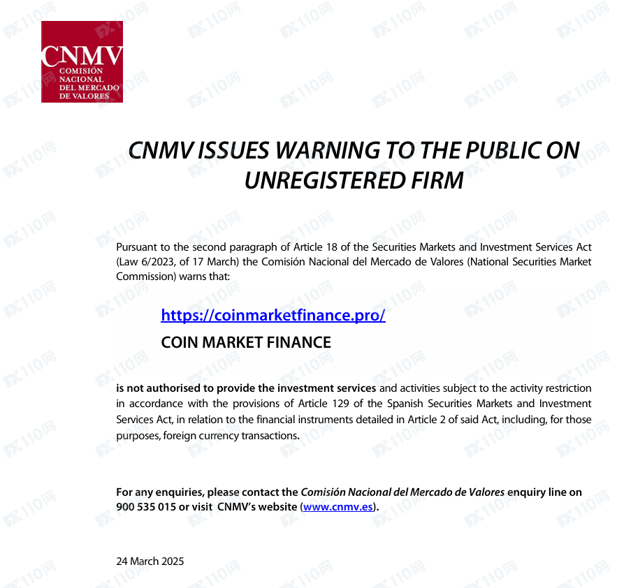 2025年3月27日新增西班牙國家證券市場委員會(CNMV)警示圖如下: