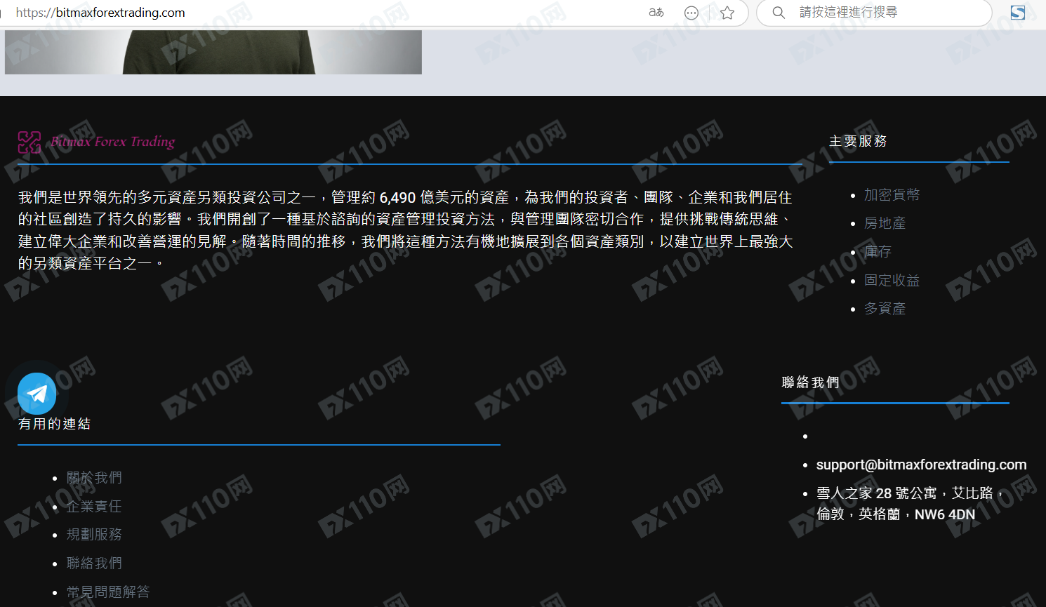 該平臺宣稱提供外匯、股指、加密貨幣等金融產品交易服務,是世界領先的多元資產另類投資公司之一,但僅有標示具體地址位于英國,未公布公司名稱以及任何金融監管信息以便用戶核實。