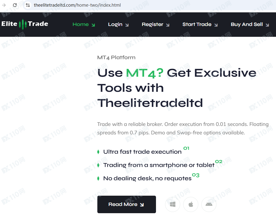 Elite Trade平臺宣傳提供外匯等金融產品投資服務,但并未公布其經營地址和金融服務牌照以便核實。