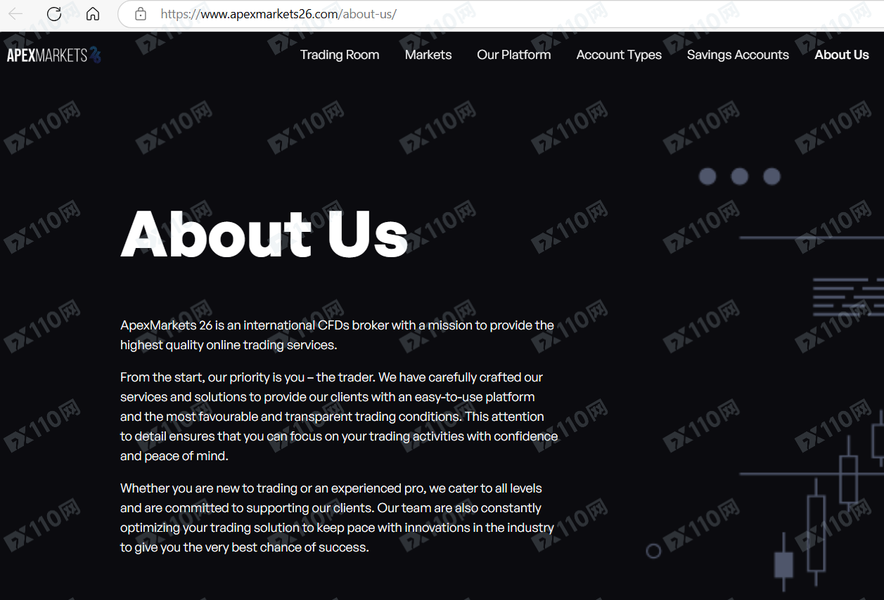 該平臺宣稱提供外匯、股指、商品、加密貨幣等交易服務,但未公布公司名稱以及任何金融監管信息以便用戶核實。