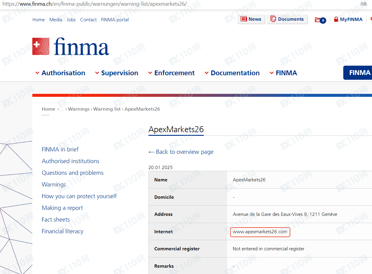 此外,該平臺非法提供金融服務,已被瑞士金融市場監督管理局(FINMA)列入警示,請遠離!