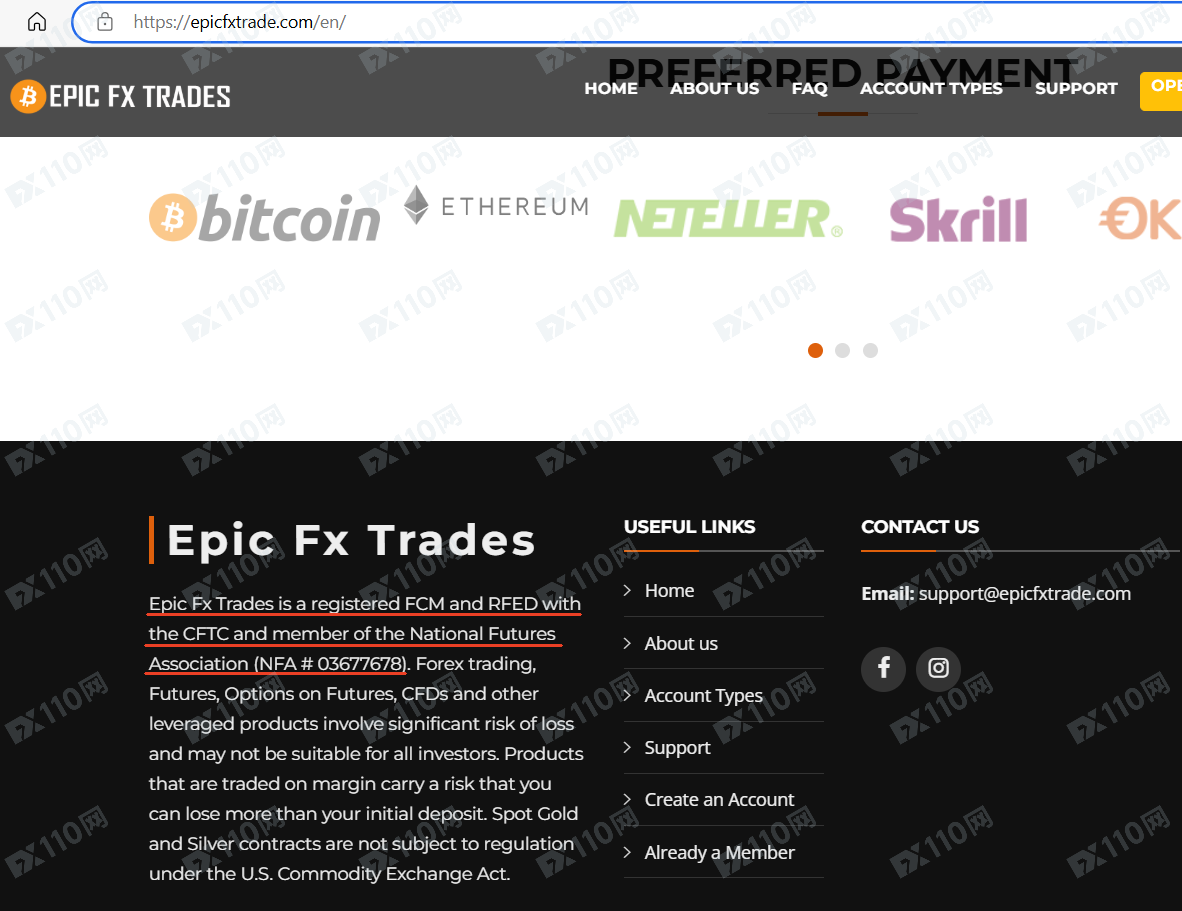 該平臺宣稱提供外匯、加密貨幣等交易服務,持有英國公司注冊證,登記名稱EPIC FX LTD,編號11987925,是美國商品期貨交易委員會CFTC以及美國全國期貨協會NFA(證號03677678)的注冊會員。