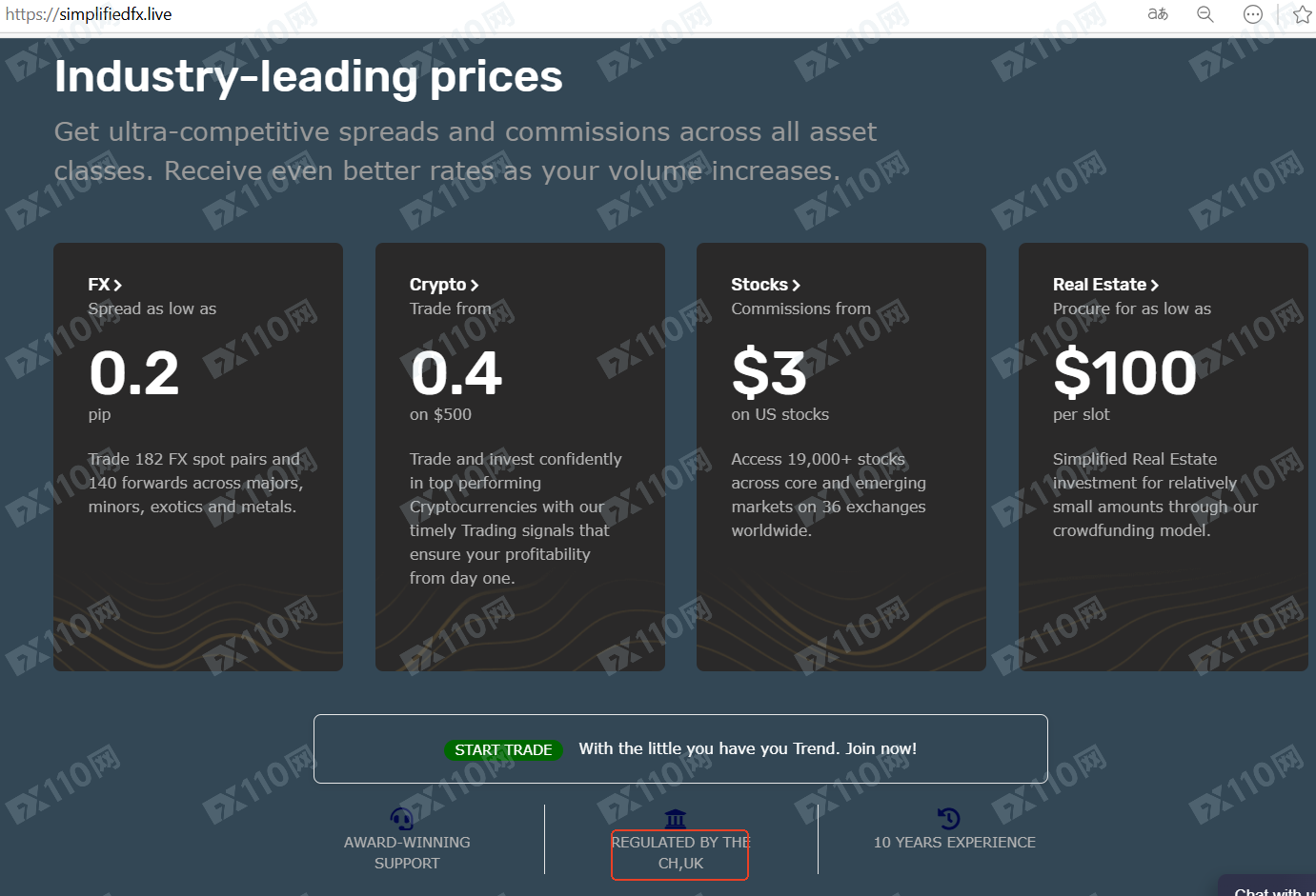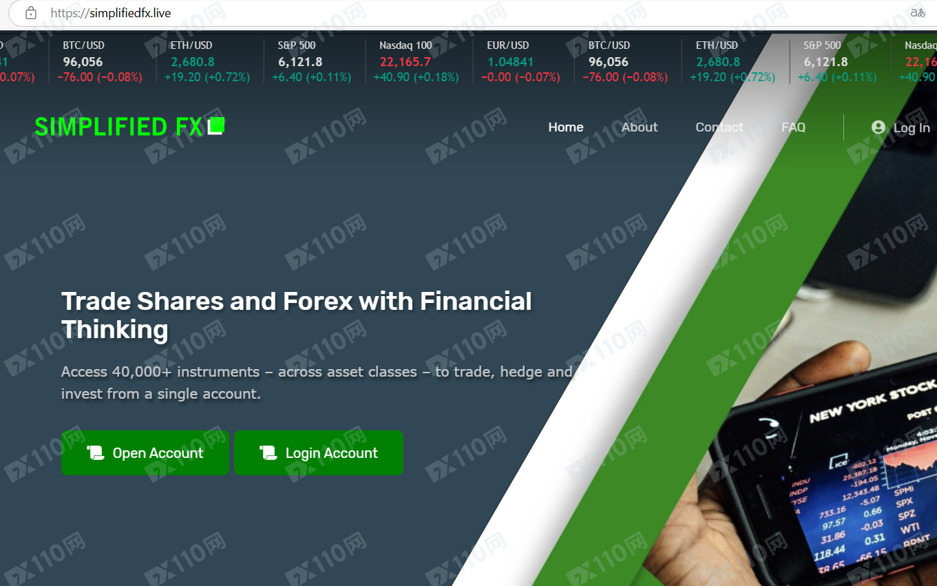 該平臺宣稱提供外匯、股指、商品、加密貨幣等交易服務,由Simplifiedfx LTD運營,但網頁中僅標示受CH,UK監管,未公布更具體的金融監管機構信息以便用戶核實。
