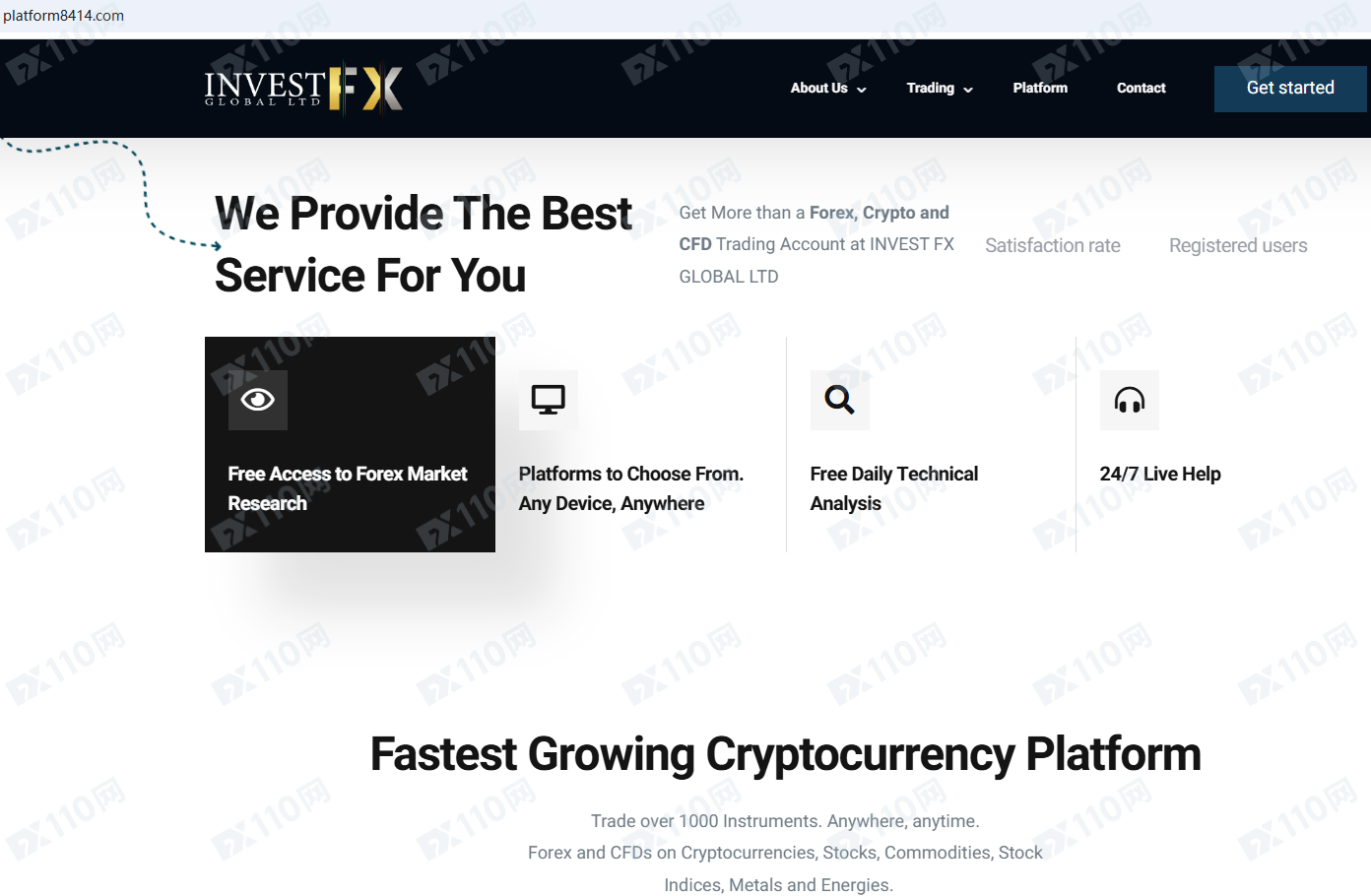 INVEST FX GLOBAL平臺宣傳提供外匯、加密貨幣、股票、大宗商品等金融衍生品投資服務,但并未公布其經營地址和金融服務牌照以便核實。