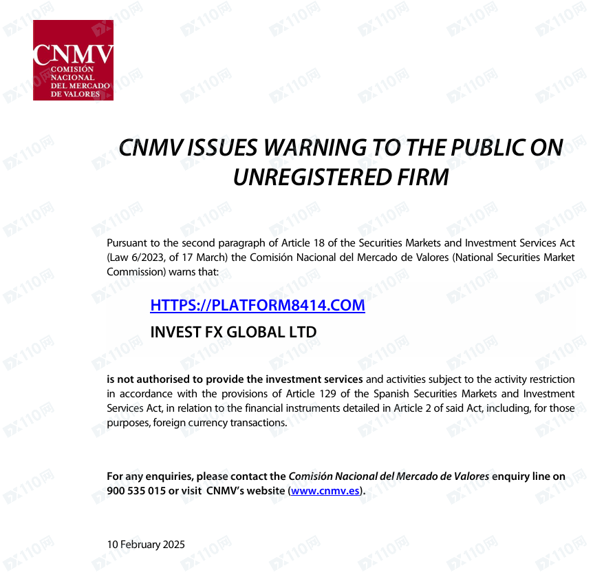2025年2月26日新增西班牙國家證券市場委員會(CNMV)警示圖如下: