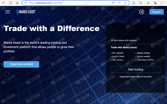 該平臺宣稱提供外匯、股指、商品、加密貨幣等交易服務,由Marex Asset Limited運營,但未公布任何金融監管信息以便用戶核實,風險極大,請勿入金交易。