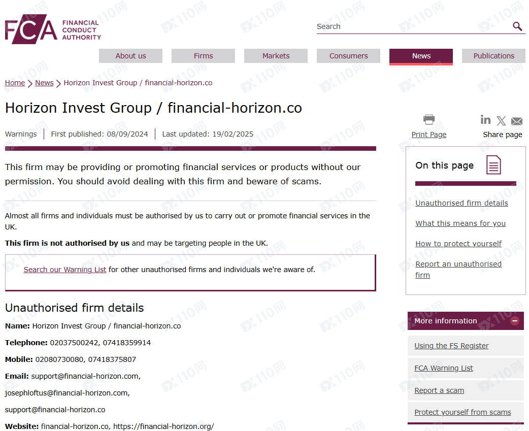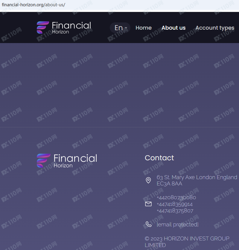 Financial Horizon平臺宣傳所屬HORIZON INVEST GROUP LIMITED,位于英國倫敦,提供廣泛的投資和資產管理服務。
