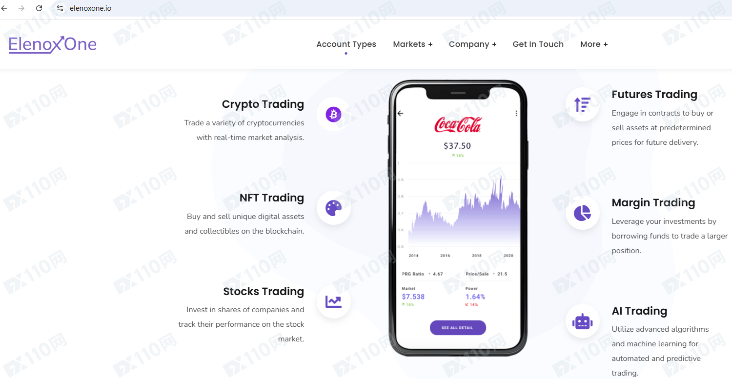 ElenoxOne平臺宣傳位于瑞士,提供加密貨幣、股票、期貨等金融衍生品投資服務,但未公布其金融服務牌照以便核實。
