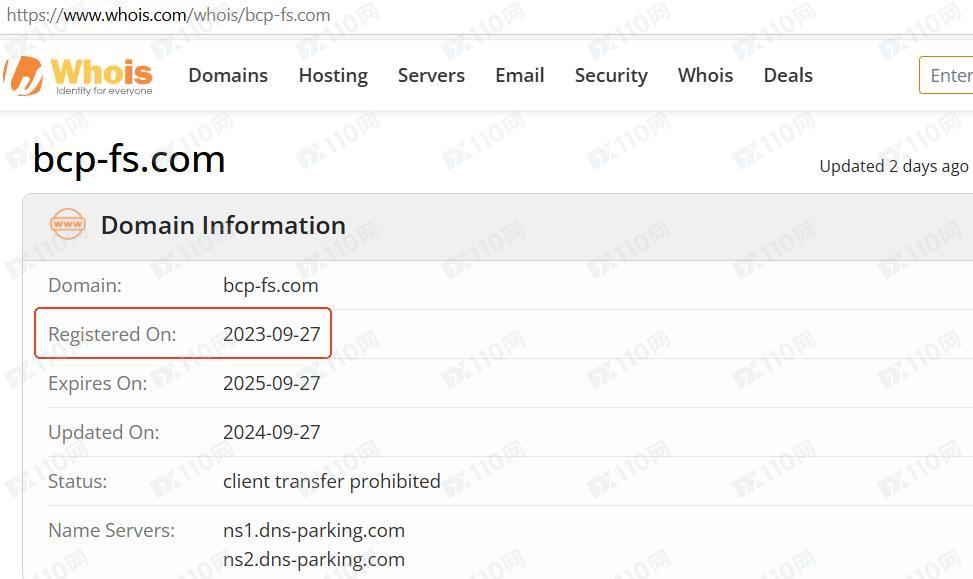 平臺域名成立時間為2023年9月27日。