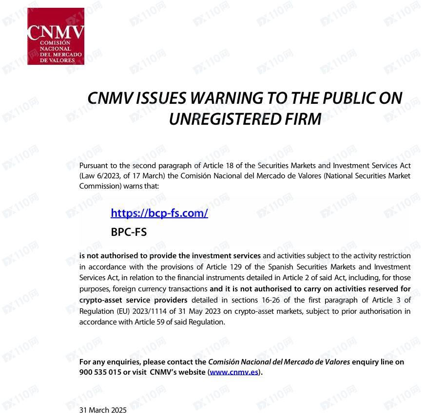 此外,該平臺非法提供金融服務,已被西班牙國家證券市場委員會(CNMV)列入警示,請遠離!