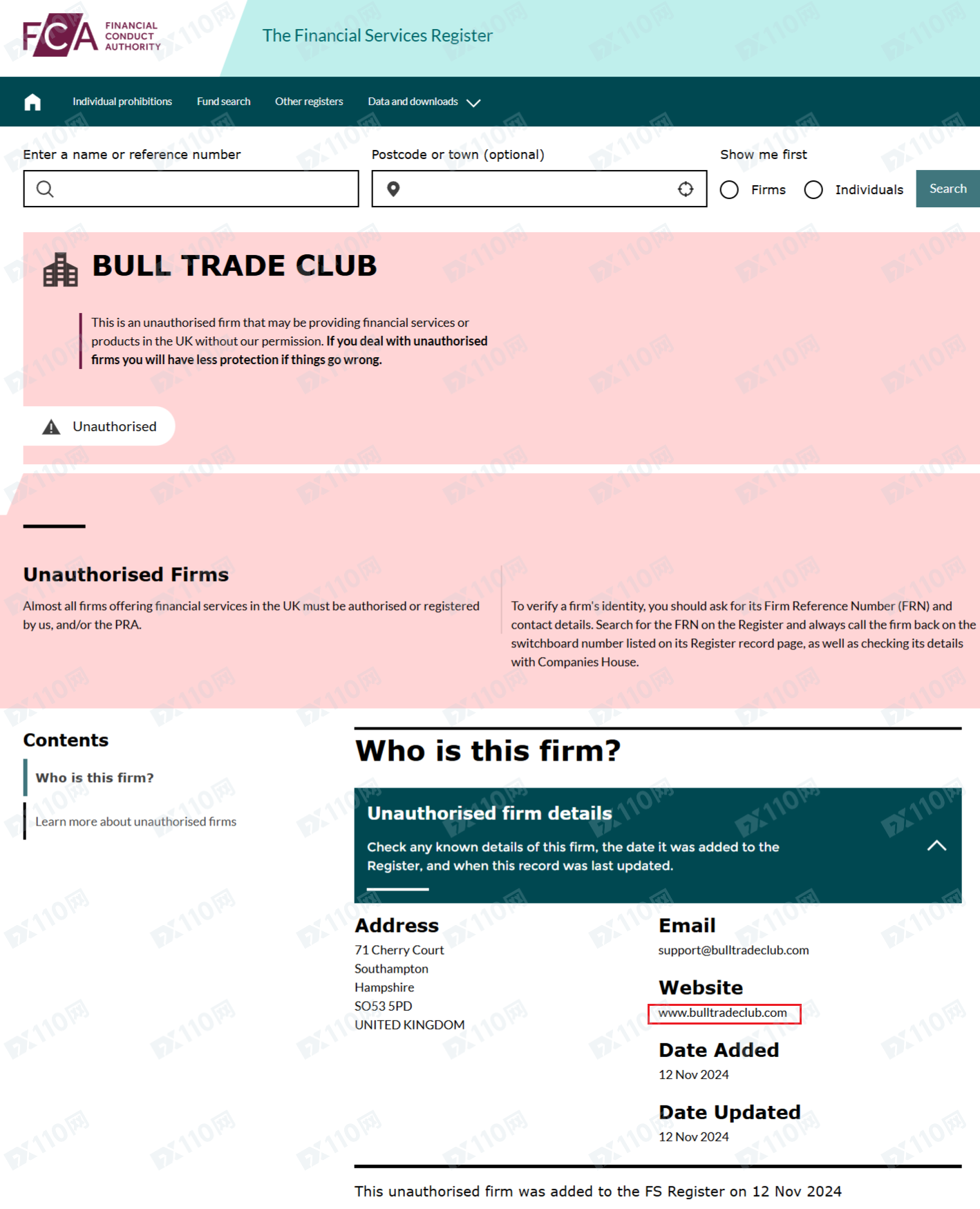 我們在澳大利亞ASIC、塞浦路斯CySEC皆查無符合Bull Trade Club的公司名稱,在英國金融行為監管局(FCA)查到的信息,該平臺非法提供金融服務,已被列入警示,而直布羅陀GFSC、美國FinCen、美國FINRA則不提供金融衍生品經紀服務的授權許可,確認該平臺是虛假宣傳,根本不受監管。