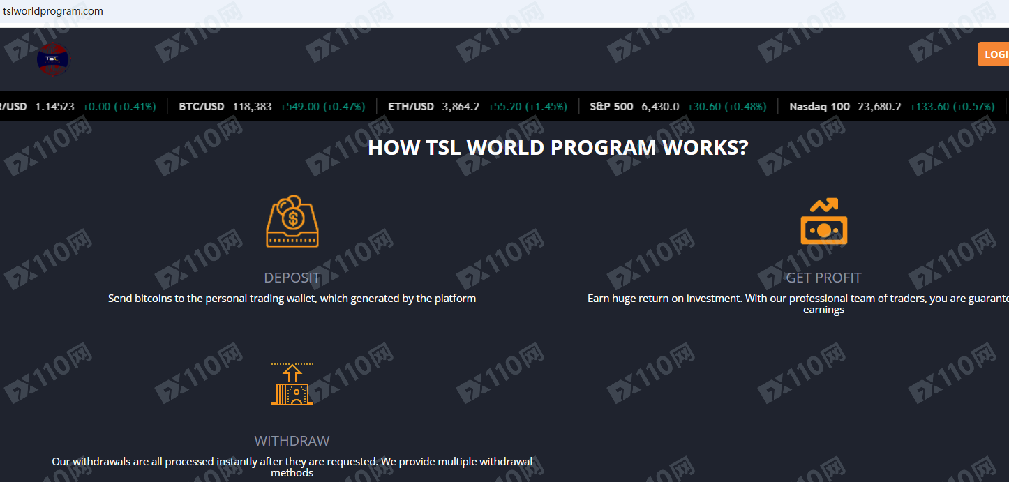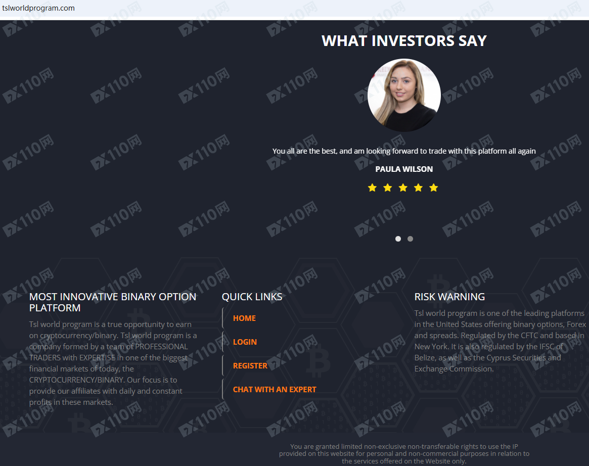 Tsl world program宣傳是一家位于美國的交易平臺,提供二元期權、外匯等金融產品投資交易服務,獲得美國CFTC、伯利茲FSC和塞浦路斯CySEC的監管。