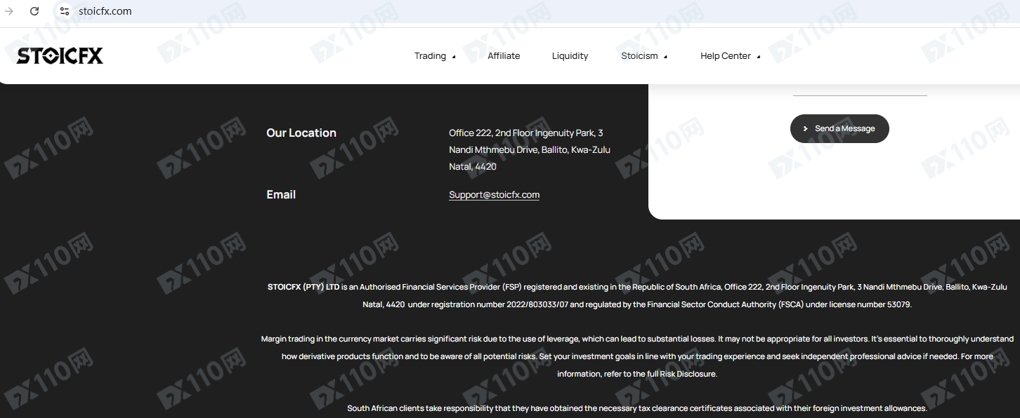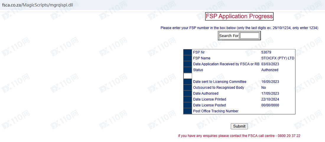 經查詢,在南非FSCA確實有一家STOICFX (PTY) LTD登記,但并未登記網址!