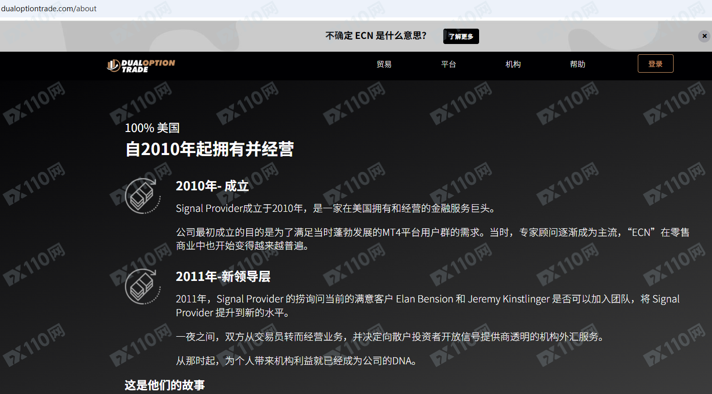 DualOption Trade平臺宣傳所屬Signal Provider Pty Ltd,是一家美國金融服務提供商,提供外匯、指數、大宗商品等金融衍生品投資服務,但并未公布其金融服務牌照以便核實。