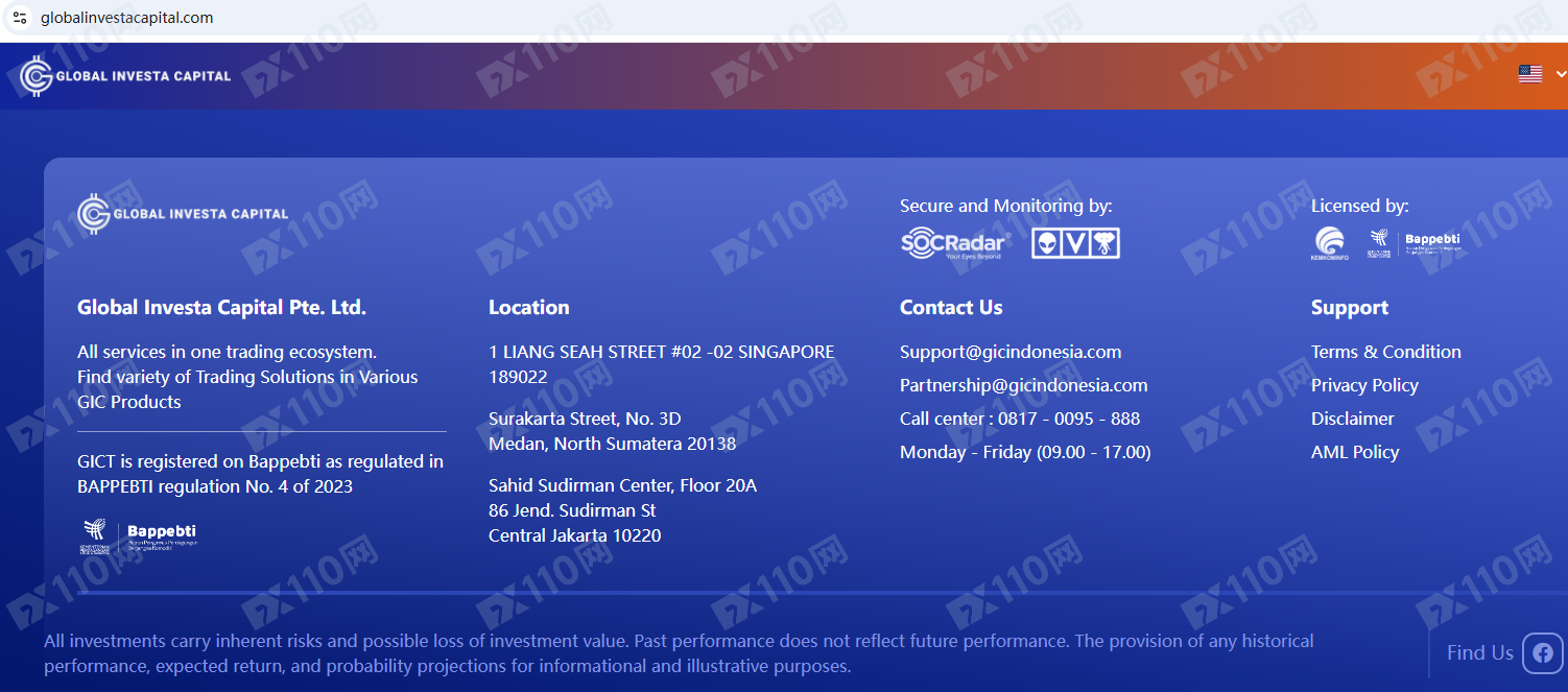 GICTRADE平臺宣傳所屬Global Investa Capital Pte. Ltd.,受印度尼西亞商品期貨交易監管機構BAPPEBTI的監管,提供數字資產投資服務。