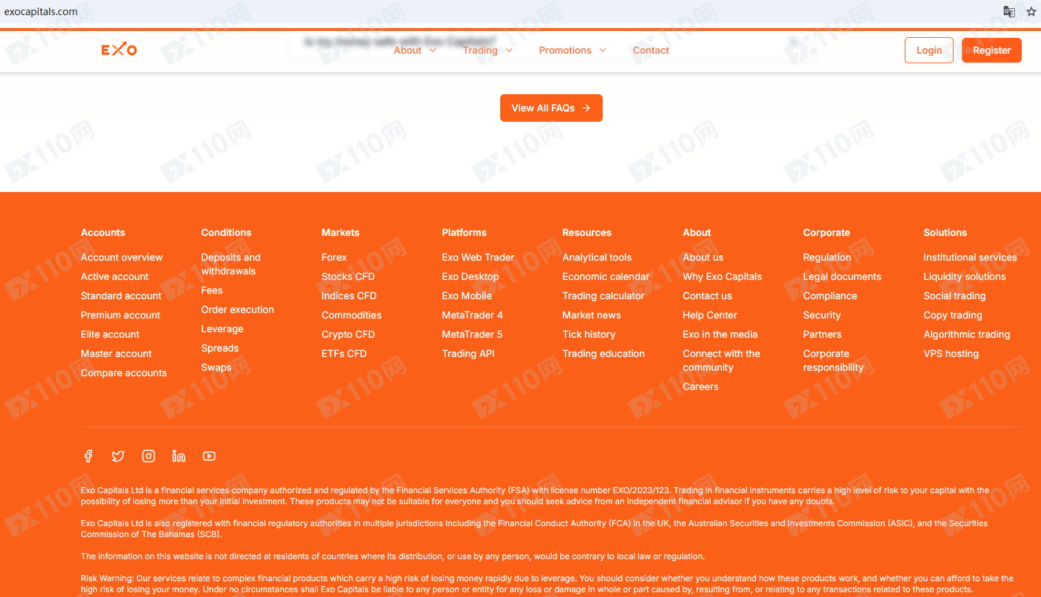 該平臺宣傳Exo Capitals Ltd是一家獲得FSA授權和監管的金融服務公司,也獲得英國FCA、澳大利亞ASIC和巴哈馬SCB的監管,提供外匯、股票、指數、大宗商品、加密貨幣等金融衍生品投資交易服務。