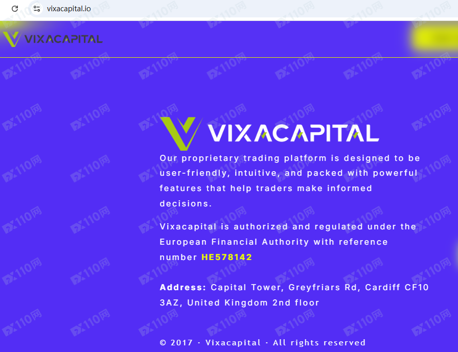 Vixacapital平臺宣傳地址位于英國,獲得歐洲金融管理局授權和監管,提供加密貨幣投資交易服務。