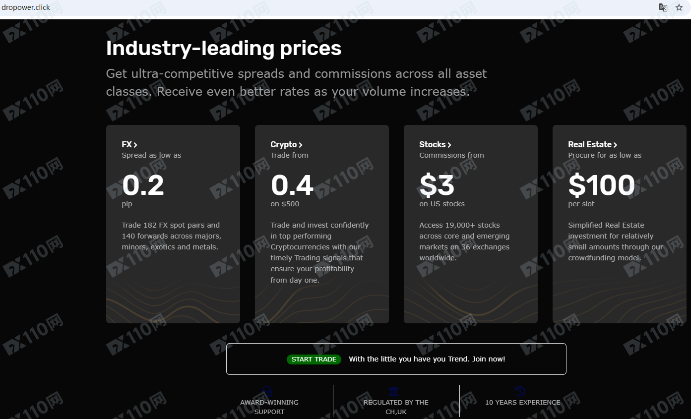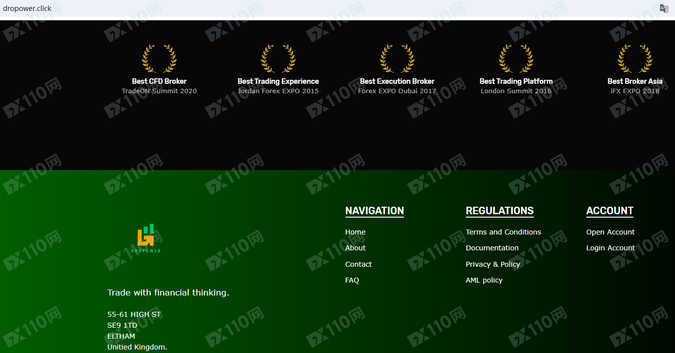 Dropower平臺宣傳位于英國,受英國的監管,提供外匯、加密貨幣、股票等金融衍生品投資交易服務。