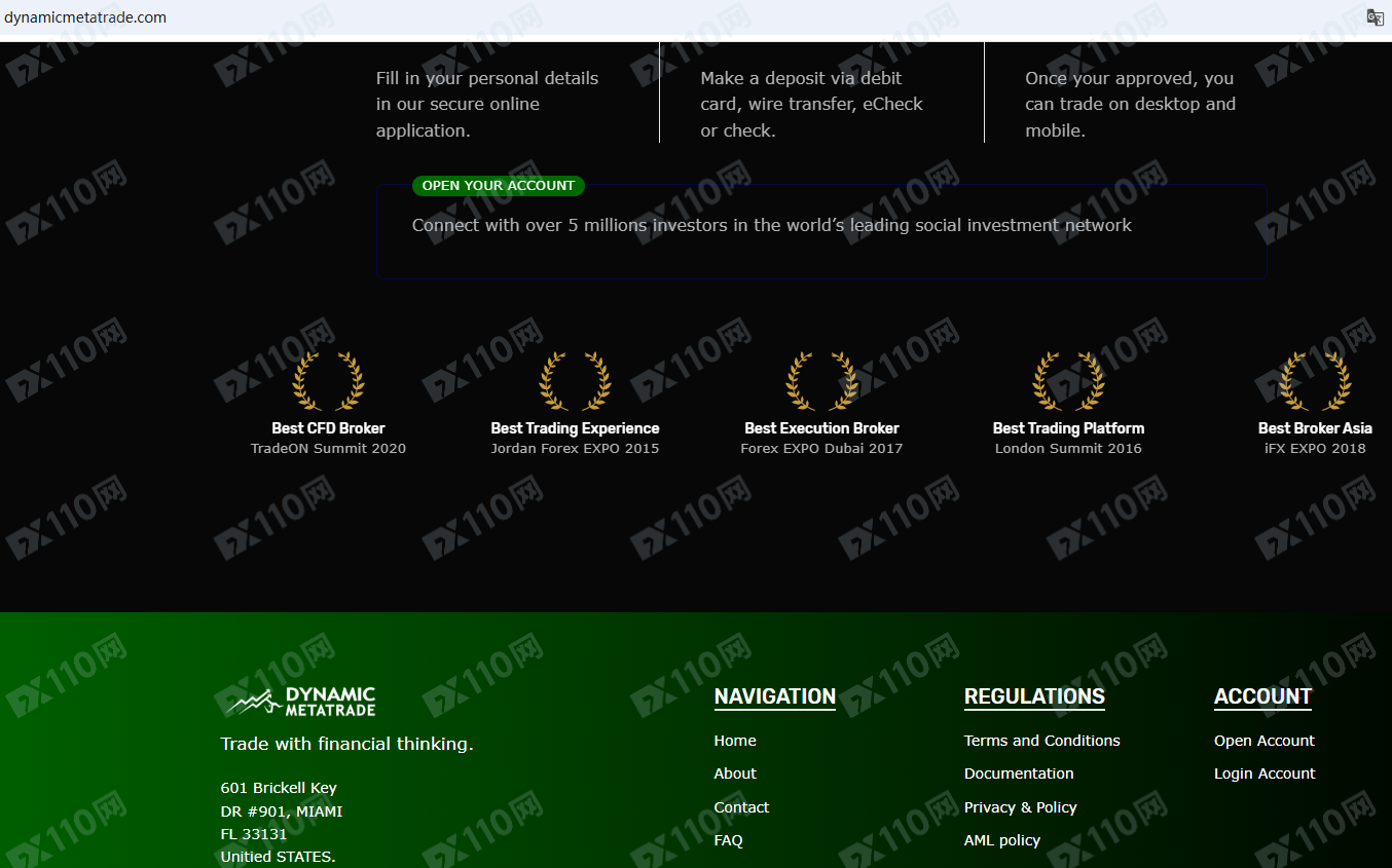 Dynamic Metatrade平臺宣傳位于美國,獲得英國的監管,提供外匯、加密貨幣、股票等金融衍生品投資交易服務。