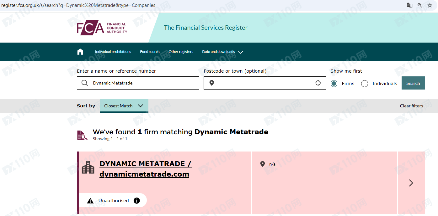 因未經授權許可提供金融產品投資服務,Dynamic Metatrade已被英國FCA列入警示黑名單,請遠離!