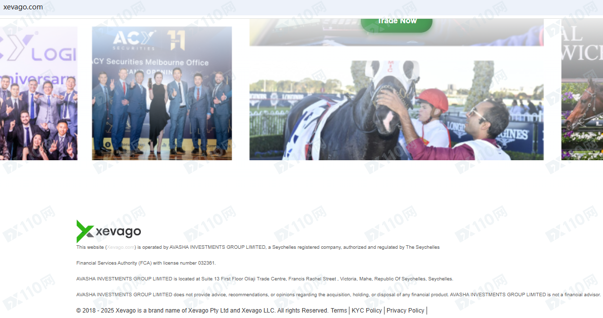 Xevago宣傳所屬AVASHA INVESTMENTS GROUP LIMITED,是一家在塞舌爾注冊公司,并受塞舌爾FSA的授權和監管,提供指數、期貨、債券、外匯等金融衍生品投資交易服務。