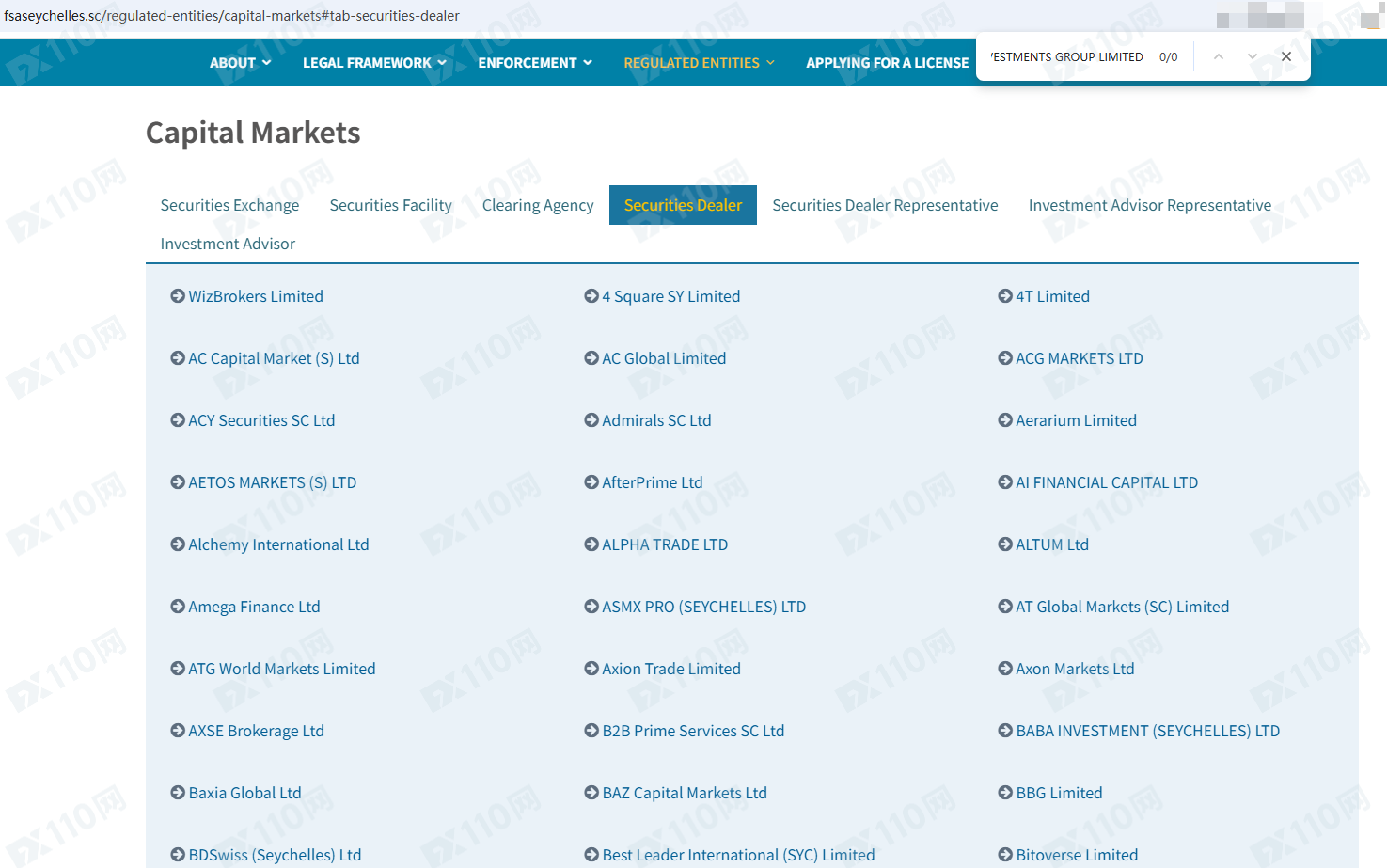 經查詢,在塞舌爾FSA的公司列表中并未查詢到該公司登記,顯然不受監管。