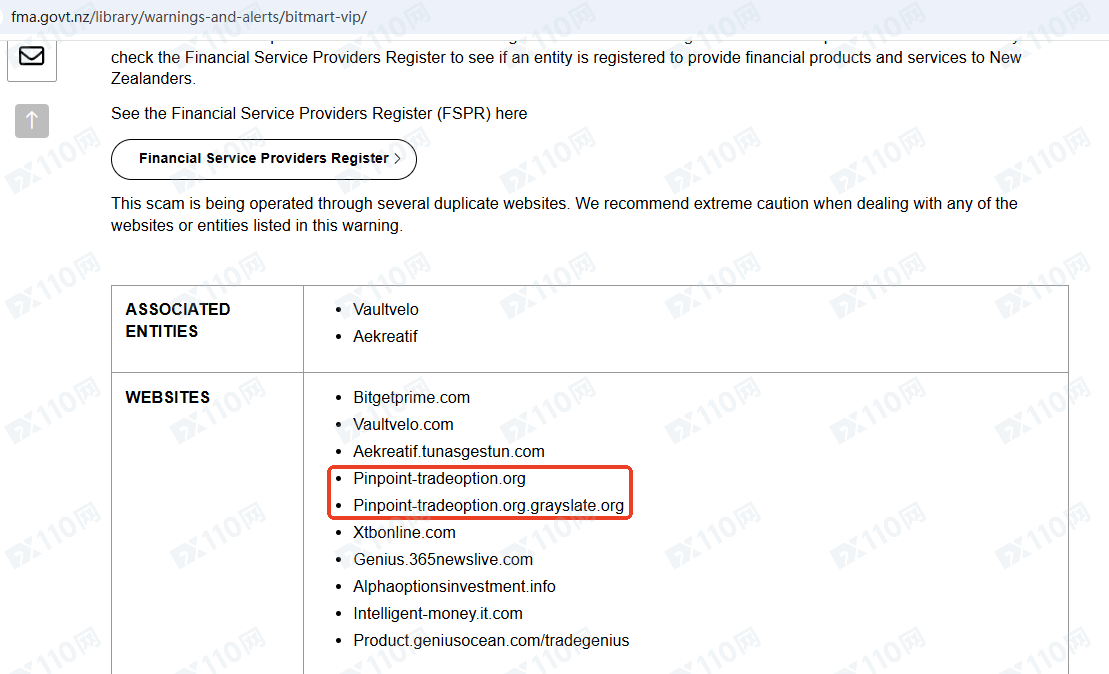因未經授權許可提供金融產品投資服務,Pinpoint Trade已被新西蘭FMA列入警示黑名單,請遠離!