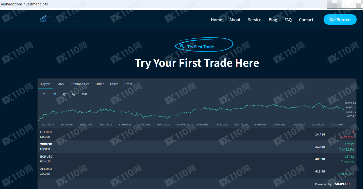 Alpha Options Investment平臺宣傳位于美國,提供加密貨幣、外匯、大宗商品等金融衍生品投資交易服務。