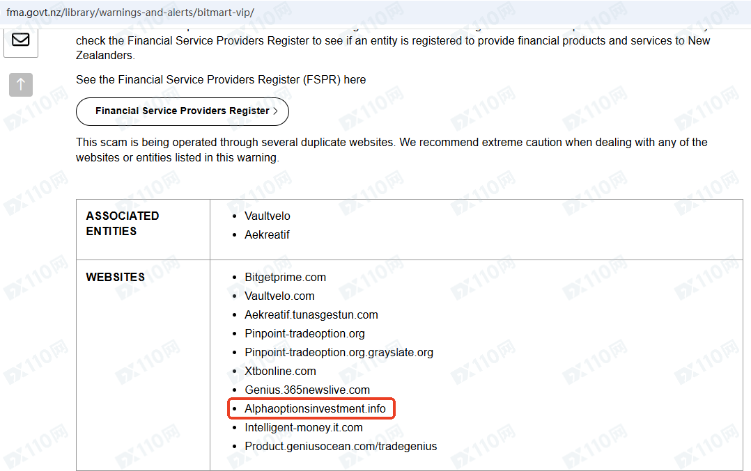 因未經授權許可提供金融產品投資服務,Alpha Options Investment已被新西蘭FMA列入警示黑名單,請遠離!