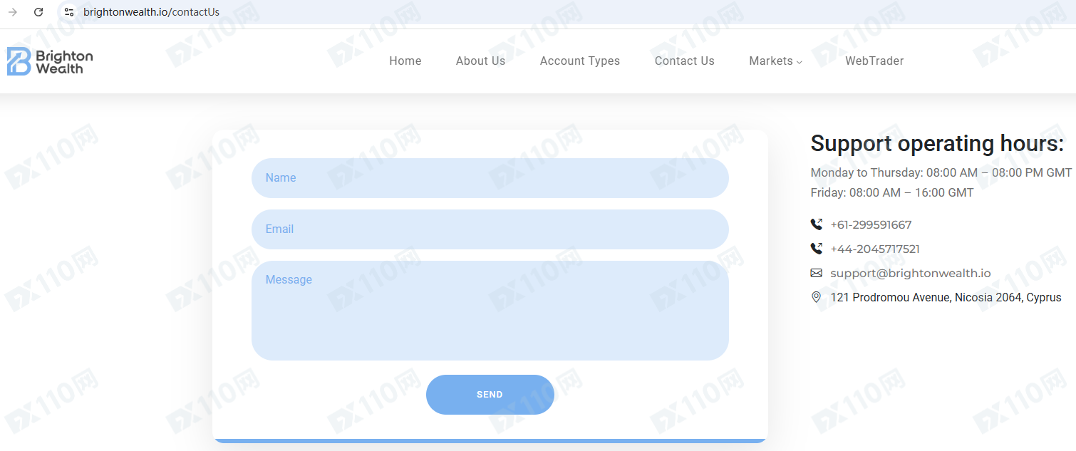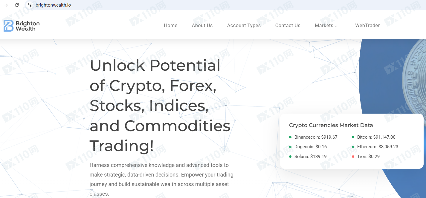 Brighton Wealth平臺宣傳位于塞浦路斯,提供外匯、指數、大宗商品、加密貨幣等金融衍生品投資交易服務,但并未公布其金融服務牌照以便核實。