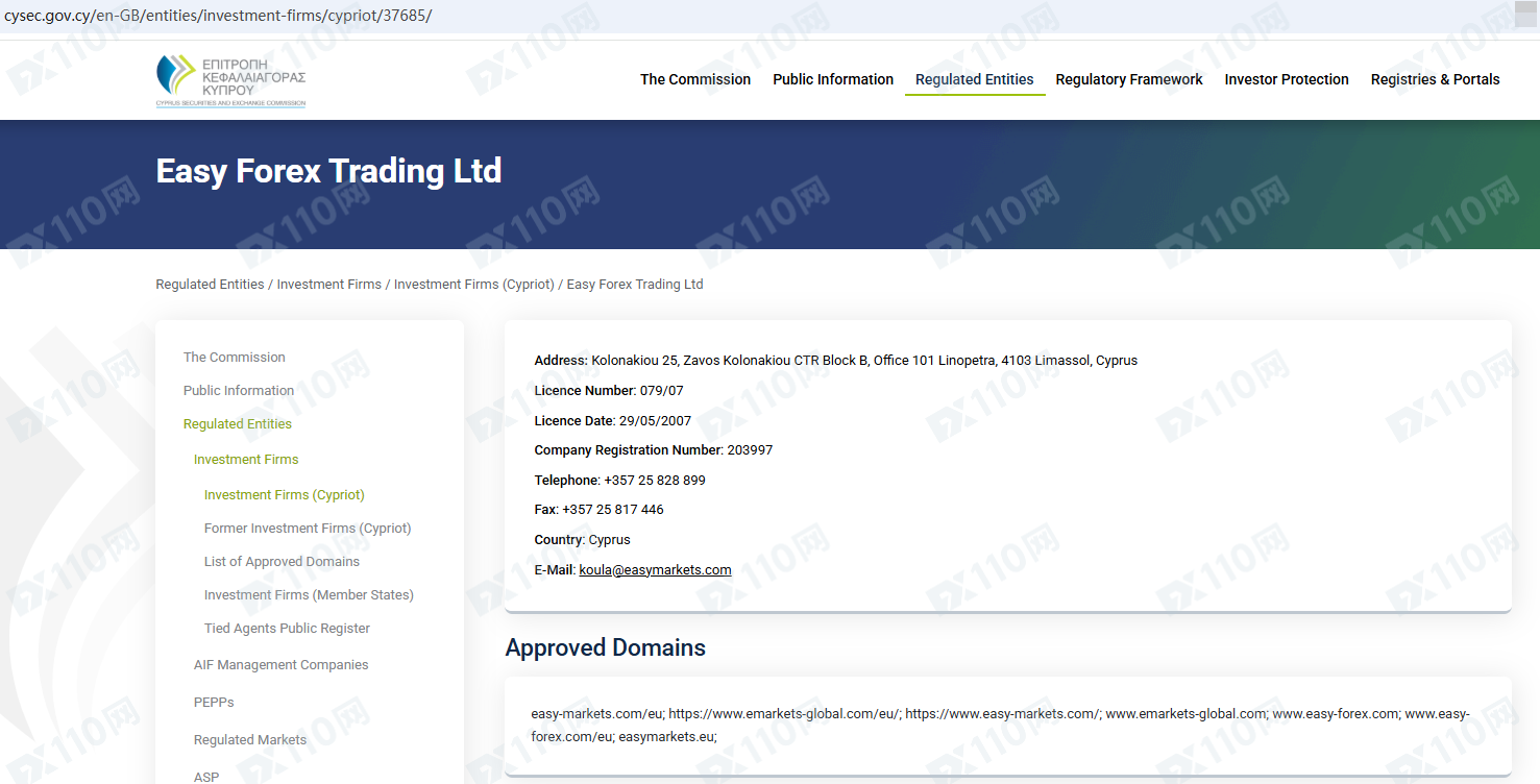 經查詢,塞浦路斯CySEC 079/07對應公司名稱為Easy Forex Trading Ltd,但登記網址中沒有elitehandelnkapitals.com/en,顯然該平臺是虛假宣傳,套牌監管!