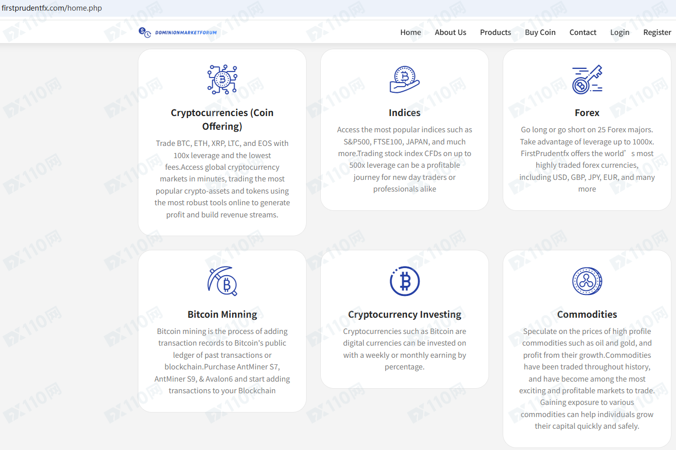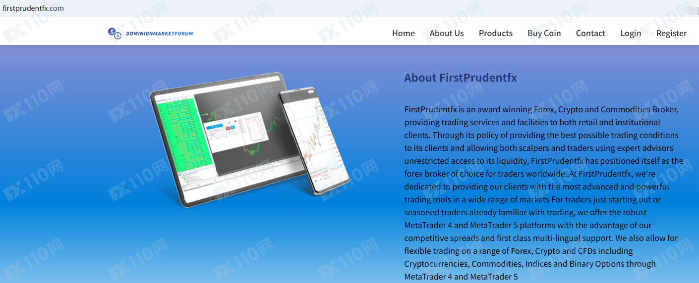 FirstPrudentfx平臺宣傳位于英國,提供加密貨幣、指數、外匯、大宗商品等金融衍生品投資交易服務,但并未公布其金融服務牌照以便核實。