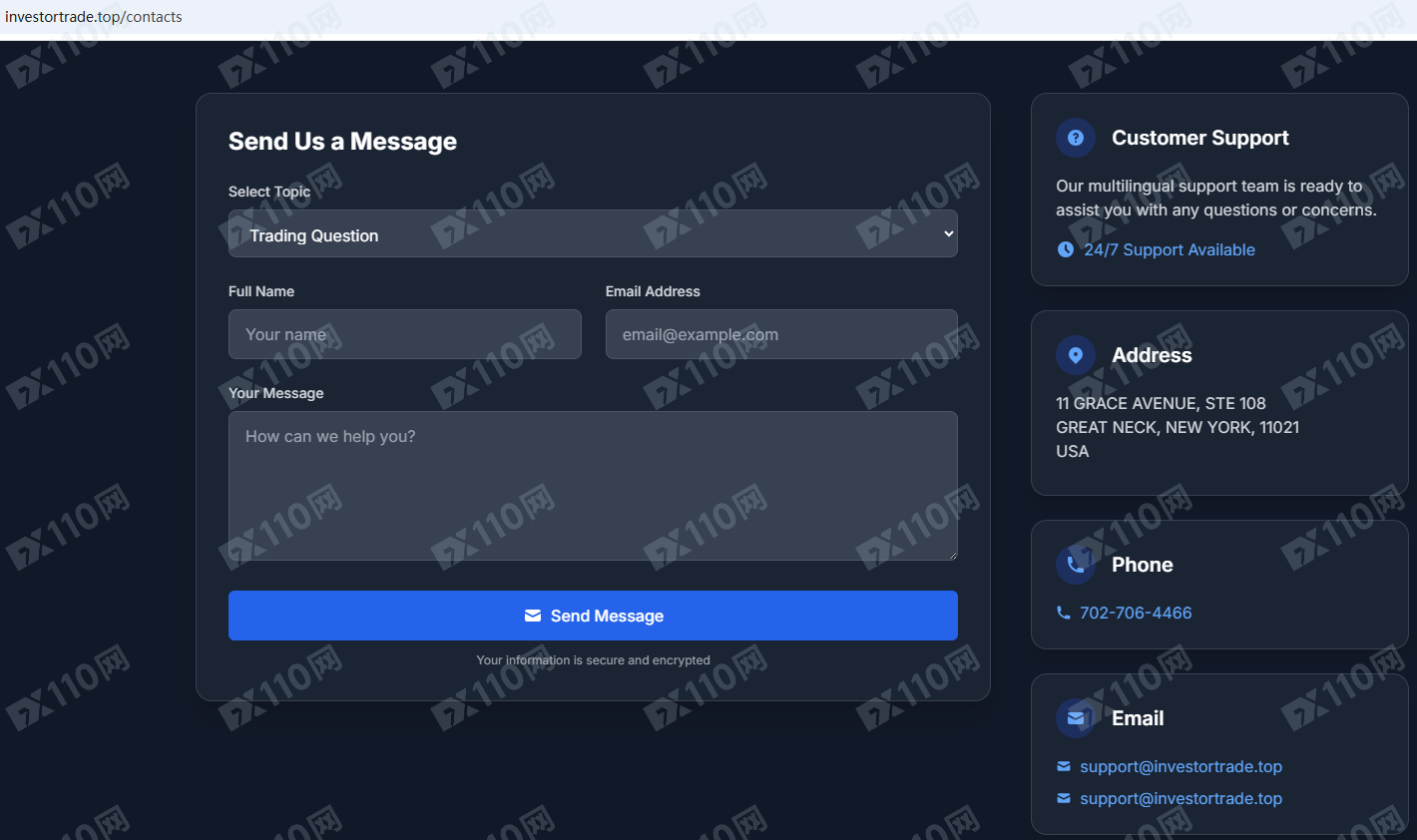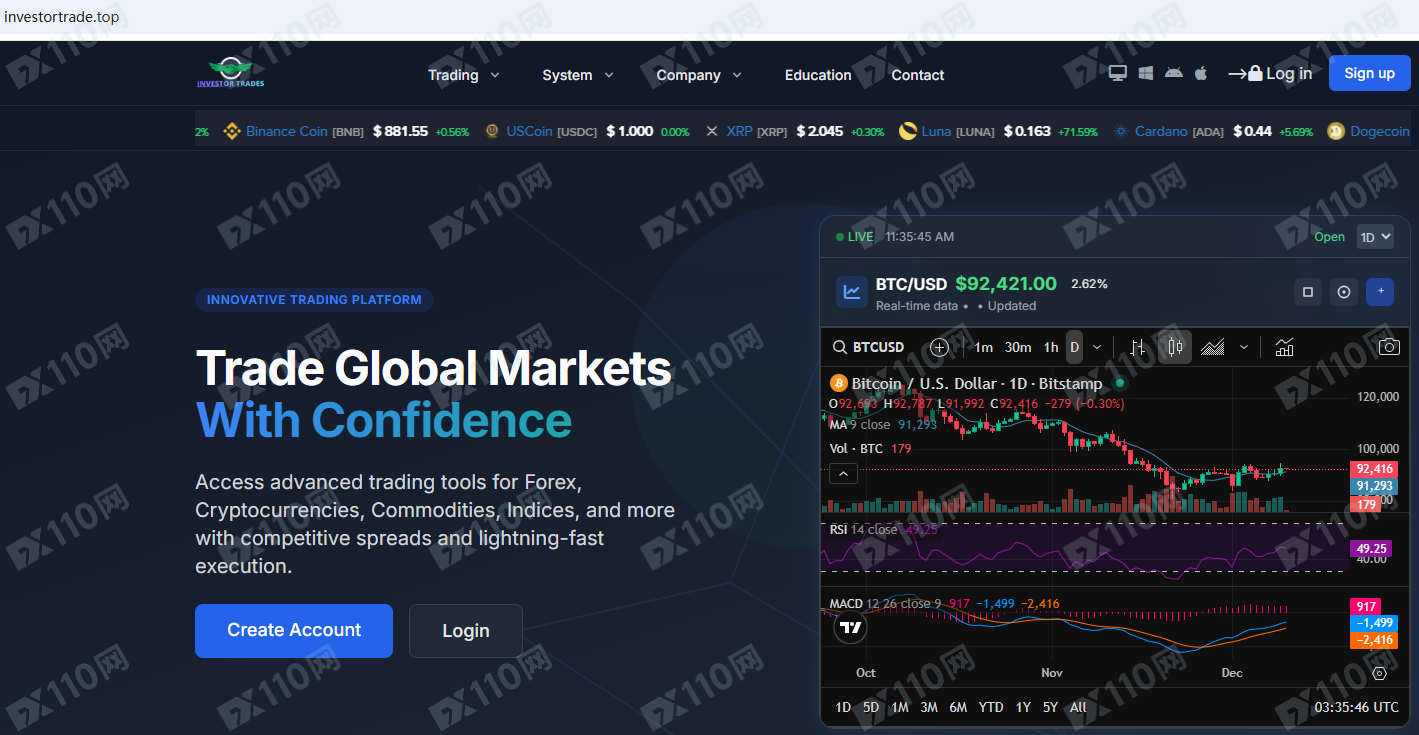 Investor Trades平臺宣傳位于美國,提供外匯、加密貨幣、大宗商品、指數等金融衍生品投資交易服務。